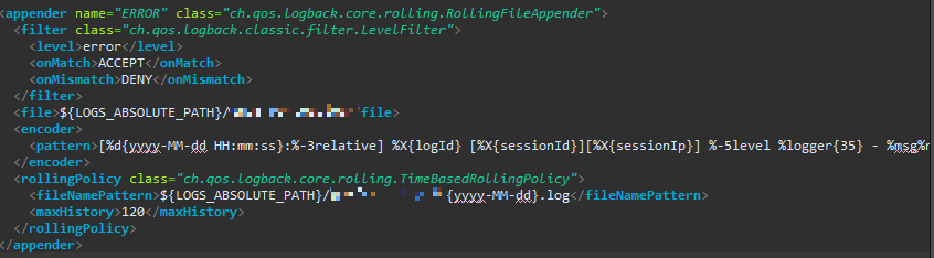 나 같은 경우는 해당 file의 경로가 ${LOGS_ABSOLUTE_PATH} 라고 지정되어 있었다. 그리고 그 경로는