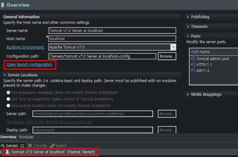 이클립스의 tomcat 서버를 더블클릭하면 해당 이미지가 뜬다.