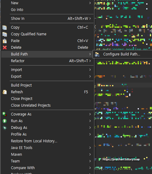 프로젝트 폴더 우클릭 후 - Run As - Maven clean