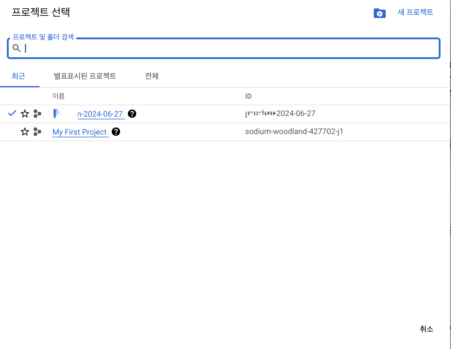 각설하고 홈에서 좌측 상단에 구글 로고 옆에 프로젝트 목록을 확인할 수 있습니다.