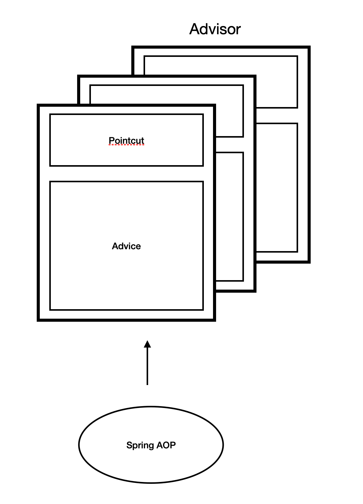AOP를 공부했다면 익숙한 그림일 것입니다. Pointcut은 어디에, advice는 무엇을 적용하냐인 거고 둘을 합친게 Advisor입니다. 스프링 컨테이너는 빈을 생성하는 시점(런타임)에 Aspect를 통해 조건에 맞는 프록시 객체를 생성합니다.